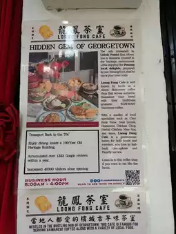 Loong Fong Café offers a delightful blend of traditional flavors and a cozy, retro ambiance. The moment I walked in, the warm lighting and vintage decor made me feel right at home. It's a spot where you can unwind and enjoy the simple pleasures of life.