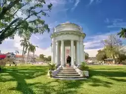The main building outside the church is a Victorian-style pavilion in the form of a Greek temple commemorating Francis Wright.