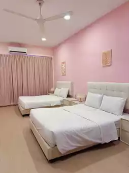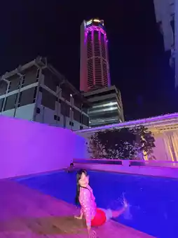 This trip to Penang, I stayed at a very sweet-colored hotel, ‘The Pink Cabana Hotel Penang’. It is located near Komtar and is conveniently accessible by foot to Street Art. The entire building is decorated in sweet pink tones, from the front of the hotel, the front desk, and even in the bedroom. The room we booked had two king-sized beds and could accommodate 4 people. The room was spacious and had windows, but the city view was not very beautiful. The bathroom floor was a bit slippery, and there was a water hose without a spray nozzle. There is also a swimming pool, which offers a very close-up view of the Komtar building. It is very beautiful. In terms of service from the staff, they communicate well and try to help with various matters. I really like it. The hotel also has a cafe that is also decorated in sweet pink, which is located right next door. However, we did not have the chance to try it out. However, it looks like there are quite a few photo spots. Anyone who stays here will also receive a voucher for a discount when using the cafe.