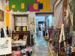 Art Lane in George Town, Penang, is absolutely a street worth exploring, brimming with artistic gift shops! One particular highlight is a shop that spans 5-6 interconnected houses, offering a delightful mix of clothes, second-hand books, and various gifts. As you stroll further down from this shop, you'll discover several other great clothing stores, especially those specializing in beautiful linen garments (as seen in images 14-15, if provided).