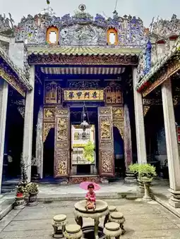 The striking green mansion is a magnificent showcase of architecture and valuable treasures from the past, once owned by Chung Keng Kwee, a wealthy overseas Chinese tycoon who settled on this island. He was a tin mining entrepreneur in Perak and the leader of the Hai San secret society. This house was built in the 1890s. Admission fee is 50 Ringgit per person, approximately 350 Baht.