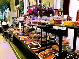 Extensive cake selection (cheesecakes, chocolate tarts, etc.)