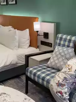 - Plush bedding and blackout curtains for a restful night’s sleep