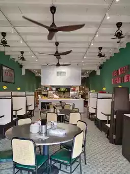 A classic Penang morning scene – marble tables, wooden chairs, steaming baskets rolling past, and the lively chatter of locals. Simple, bustling, and full of heritage charm.
