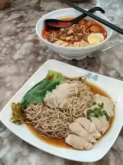 Wantan Noodles – Springy egg noodles tossed in dark soy sauce, served with juicy wantans.