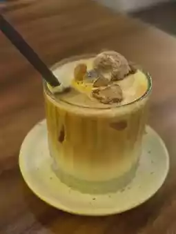The author ordered a cup of iced fresh milk coffee, even the ice cubes were shaped like a bear. I didn't expect this cafe to be so thoughtful. Again, it's so cool to have a cold drink on a hot day!