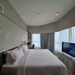 As you can see from the photos, the one bedroom suite is spacious with a full kitchen, a living space and a bedroom and it comes with a spacious bathroom with both standing shower and a bathtub looking out to Gurney Drive.