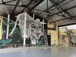 Hin Bus Depot is a former 1947 art-deco bus depot located on Jalan Gurdwara in George Town, Penang. Once home to the iconic “Blue Buses,” the depot was abandoned in the late 1990s and early 2000s. In 2014, artist Ernest Zacharevič transformed the derelict space with his Art Is Rubbish Is Art exhibition, sparking its rebirth as a vibrant creative hub.