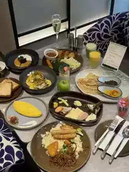 The breakfast seems a standout. Breakfast with noodles, fluffy pancakes, and bubbles, also table menu .