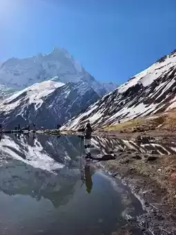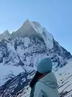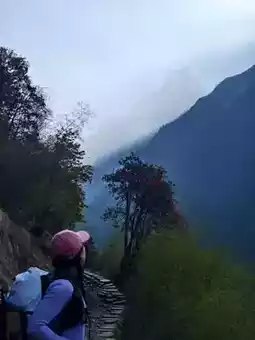 It doesn't feel tiring to walk, but eating and showering are more uncomfortable. In addition to the 360º panoramic snow-capped mountains of ABC, I personally think that the section of road from Upper Sinuwa to Dovan is the most beautiful. The shade of the trees is lush and cool, and the alpine azaleas reflect the Fish Tail Peak, making it very comfortable to walk.
