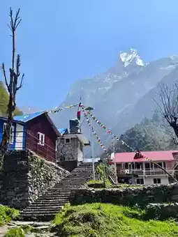 🏠 Major accommodation points along the way: Jhinu-Chhomrong-Sinuwa-Bamboo-Dovan-Himalaya-Deurali-MBC-ABC