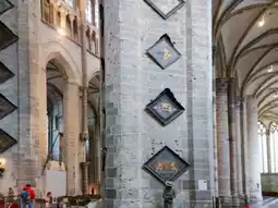 The church's architecture is in the Scheldt Gothic style, a characteristic of Gothic churches in Flanders, where the Scheldt River flows. The bluestone used in the church's construction was transported by boat from Tournai.