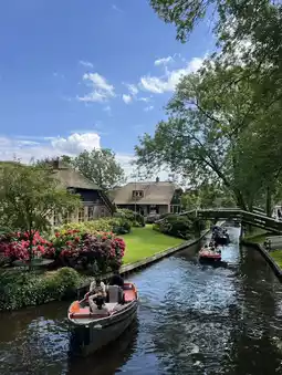 Exploring Giethoorn by boat was the highlight of my visit. Gliding along the tranquil waterways, I admired the beautifully kept gardens, vibrant with colorful flowers, and the historic cottages that seemed untouched by time. The absence of cars added to the peaceful atmosphere, making it feel like a hidden paradise.