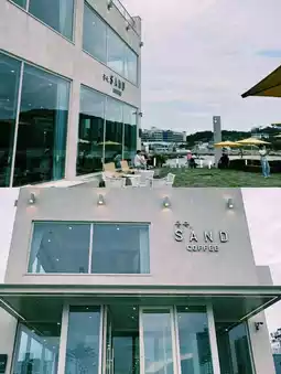 One of the most impressive cafes in Gijang was Gonggeuk Sand Coffee. The sleek concrete exterior, with its back to the ocean, made me exclaim, "Wow..." as soon as I stepped inside. The blue ocean and the sound of the waves visible through the glass windows was more than just a cup of coffee, it was soothing.