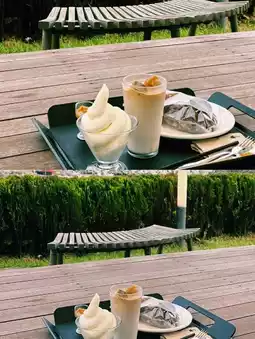 For drinks, I ordered a strong latte and tiramisu. The dessert was quite high-quality, and the latte was well-balanced. I sat there, losing track of time, and even enjoyed the view of the ocean at sunset.