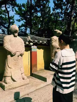 Walking along the temple's pathways, you can admire dragon sculptures, intricate bridges, and pagodas against the backdrop of the sea. There are plenty of picturesque spots to capture memories of your date. The view of the sparkling sea, cliffs, and the temple under the autumn sunlight brings a sense of peace and tranquility.