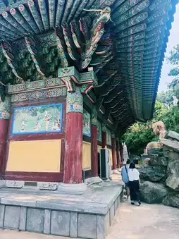 On a cool autumn day, I visited Haedong Yonggungsa Temple in Gijang, Busan. The temple, located right by the sea, offers a perfect setting for a romantic walk with its stunning scenery of the crimson autumn sky blending with the blue ocean. The sea breeze and the sound of waves naturally set the mood, making the time spent there even more special.