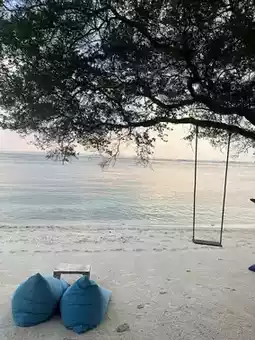 ✔ A car-free island → Accessible only by bicycle and horse-drawn carriage, offering a tranquil and peaceful atmosphere. ✔ A snorkeling paradise → Swim with turtles in the crystal-clear waters. ✔ A captivating sunset view → Take the perfect photo from the swings on the beach. ✔ The diverse Gili Islands