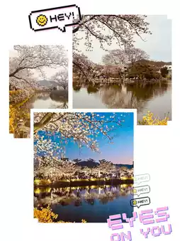 The reflection of the cherry blossoms and surrounding scenery on the water's surface at Yeonhwaji is stunning in photos, but even more breathtaking in person. A stroll along the cherry blossom path during sunset is an experience not to be missed!