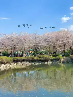 Yeonji Park is great because it has a lake and a trail in addition to cherry blossoms and tulips