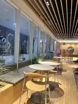 - A cafe with a great sense of style with children's chairs and a powder zone❤️