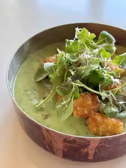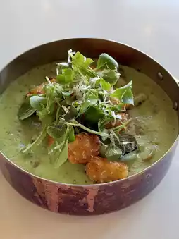 The thick basil cream goes perfectly with the chewy tteok! 💚