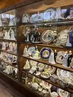 The cafe boasts a spacious three-story interior with high ceilings and large windows, offering a great sense of openness. The owner seems to have a passion for collecting plates, as there are many lovingly displayed, adding to the visual enjoyment.