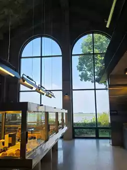 I recently visited the stunning Abogoga, a place where the pyramid-shaped red brick building harmonizes beautifully with the blooming white European hydrangeas 🧱🤍🌸. Located with the Han River flowing in the distance and Simhak Mountain spreading out like a backdrop, this spot is architecturally unique and has even won architectural awards.