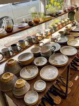 Located in Ginowan City, [Yachimun and Living Tools Mano] offers everyday tools and tableware carefully crafted by Okinawan artists.