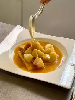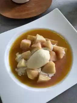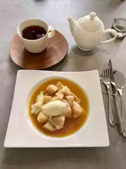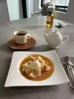 I ordered the peach version, which was a seasonal delight. 🍑Watching the staff prepare it right in front of me added a layer of excitement and elegance to the experience. The warm crepe, paired with the sweet and tangy fruit, was absolutely divine.