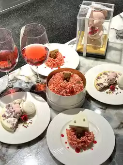 My friend and I visited Cafe pastry Louange Tokyo - Le Musée in Ginza for a relaxing tea time. This sophisticated cafe is filled with stunning desserts, including cakes inspired by bears and roses. Each creation is like a miniature work of art!