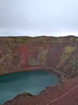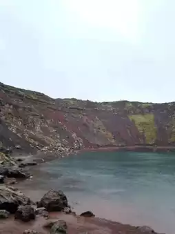 4. Kerið Crater – A volcanic crater lake with vivid red slopes and turquoise water. It’s a quick stop, but the colors are stunning. 🌋