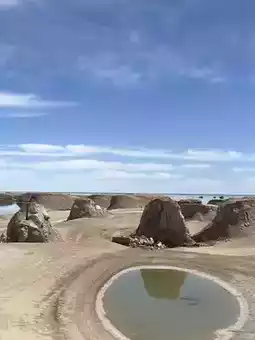 Wusute Water Yadan is located at Xitai No. 2, Dachaidan Administrative Committee, Haixi Mongolian and Tibetan Autonomous Prefecture, Qinghai Province, right next to National Highway 315. Originally an ordinary Yadan landform, the rising water level of Jinyer Lake gradually submerged the northern edge of the Yadan group, creating a unique water Yadan landscape in the world!