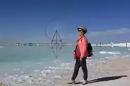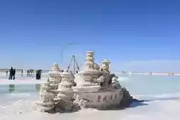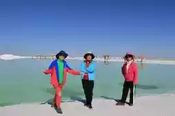 The lake water here is like crushed jade, the salt flats are natural mirrors, and even the wind carries a translucent blue. Stepping on the salt crystals with friends, striking the most relaxed poses, making heart gestures towards the heart-shaped installation, and watching the Ferris wheel reflect in the clear blue water—it turns out that the romance of the Northwest is half salt lake, half sky✨