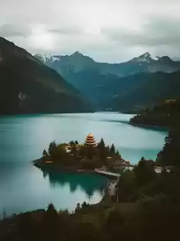 Use the lake shoreline lines to guide the viewer’s eye, making the lake center island the visual focus. Try symmetrical compositions to capture the perfect reflection of snow-capped mountains in the lake.
