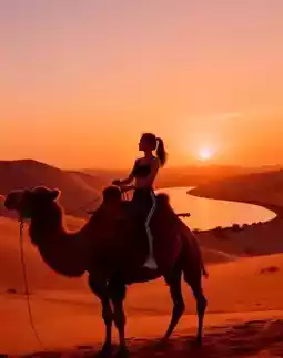 Mingsha Mountain: Ride camels at 6 PM (80 RMB per person, bargaining tip: say “two people riding together”), bring sand-proof shoe covers for climbing (rent 15 RMB at the scenic area, 5 RMB on Taobao)