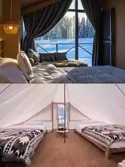 The camp tents are made by the top Nordic outdoor brand "Tentipi" and the Danish outdoor brand "Nordisk". In winter, there are 17 snow peak rooms, 14 pine rooms, and 5 suites. Each room is an independent cabin, 32–78 square meters, with underfloor heating and panoramic floor-to-ceiling windows.