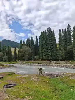 The highlight of Xiata's scenery is the view of Muzart Glacier from the corridor-like canyon. Along the way, the mountains surround us, the grassland extends from the foot of the mountain through the tall cedar forest, and the river formed by glacial meltwater accompanies us.