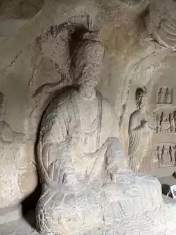 I also saw a faceless Buddha statue. This is because the continuous warfare at the end of the Northern Wei Dynasty halted the carving work before it was completed, leaving it in its current unfinished state.