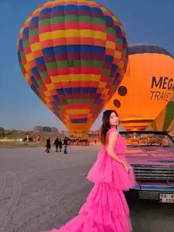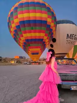 What else can you do in Goreme, Cappadocia, besides taking a hot air balloon ride? Apart from enjoying the breathtaking view of hot air balloons from your hotel terrace or chasing them across various valleys, the most photogenic and romantic experience is renting a vintage car to follow the balloons! You can even rent a beautiful dress for a photoshoot! This time, I chose my favorite pink vintage car and paired it with a matching pastel dress. In Goreme, I truly felt like a real-life Barbie! This unique experience is something you deserve to try too! 💰 Average cost per person: Car rental €80-100 (includes a driver, approximately 2 hours, cost can be shared among multiple people), Dress rental €20-80 (depending on the style).