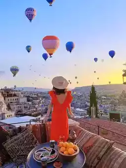 Although the hot air balloons last for about an hour, they become sparse after 5:30, so you must go to the terrace early.