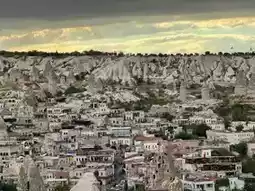 [Göreme Townscape: A patchwork of the horizon created by caves and tea towns]