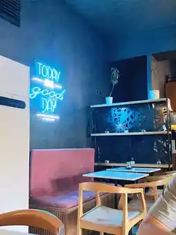 The seats are spacious and comfortable. The cafe is also filled with photogenic spots like green walls, neon signs, and coffee signs written in various languages, making it a great place to take photos!