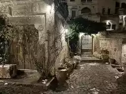 Stroll along the stone-carved streets, where the warm glow of lights reflects off ancient rock walls.