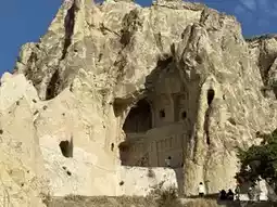 The Goreme Open-Air Museum is located within the Goreme Valley and features over 30 rock-cut cave churches adorned with exquisite frescoes. During this visit, only the Apple Church and Snake Church were explored. Photography is prohibited inside the caves, and many frescoes have been damaged. Numerous icons have had their eyes gouged out, and there are even graffiti-like carvings left by visitors.