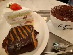 Yo~🥰 The interior is inspired by Paris, with lots of antique furniture. The breads are beautifully displayed, just like in a real European bakery. The selection of premium teas is extensive. The coffee is also delicious. It's been a while since I've had a craving for chocolate, so I ordered the Hot Chocolate Blossom, the Pain au Chocolat (Double) Bread, and the Strawberry 🍓 🍰 A slice of strawberry cake creates a blissful harmony in my mouth. 🫠