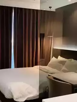 I stayed in a standard double room, and the room condition was better than I expected! The wine-colored curtains added a luxurious feel *,*