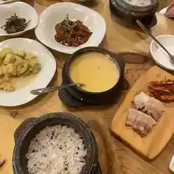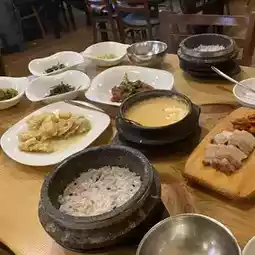 The signature menu is Tofu Village set meal. First, you can enjoy warm soft tofu, and then you can taste tofu kimchi, tofu mushroom tangsuyuk, boiled pork, stew, etc. with stone pot rice. It is not spicy and healthy, so it fills your stomach,