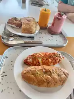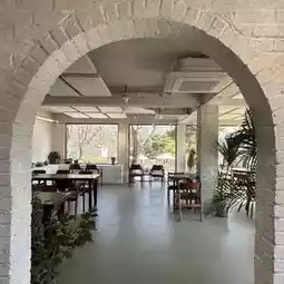 A large bakery cafe boasting a spacious garden and a European-style exterior.