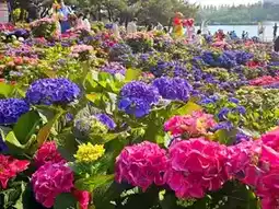The Ilsan Flower Festival has plentiful of flower for exhibition, and one of them is the hydrangea garden. As you might know Hydrangea only blooms during rainy season when the weather is very humid, but here we are delighted to be able to view the plentiful colour of hydrangea with full bloom. Surely it took the gardener a whole lot of effort to cultivate such a nice flowerbed of Hydrangeas. The glittering sunlight on the flowers made the scene even more intriguing.